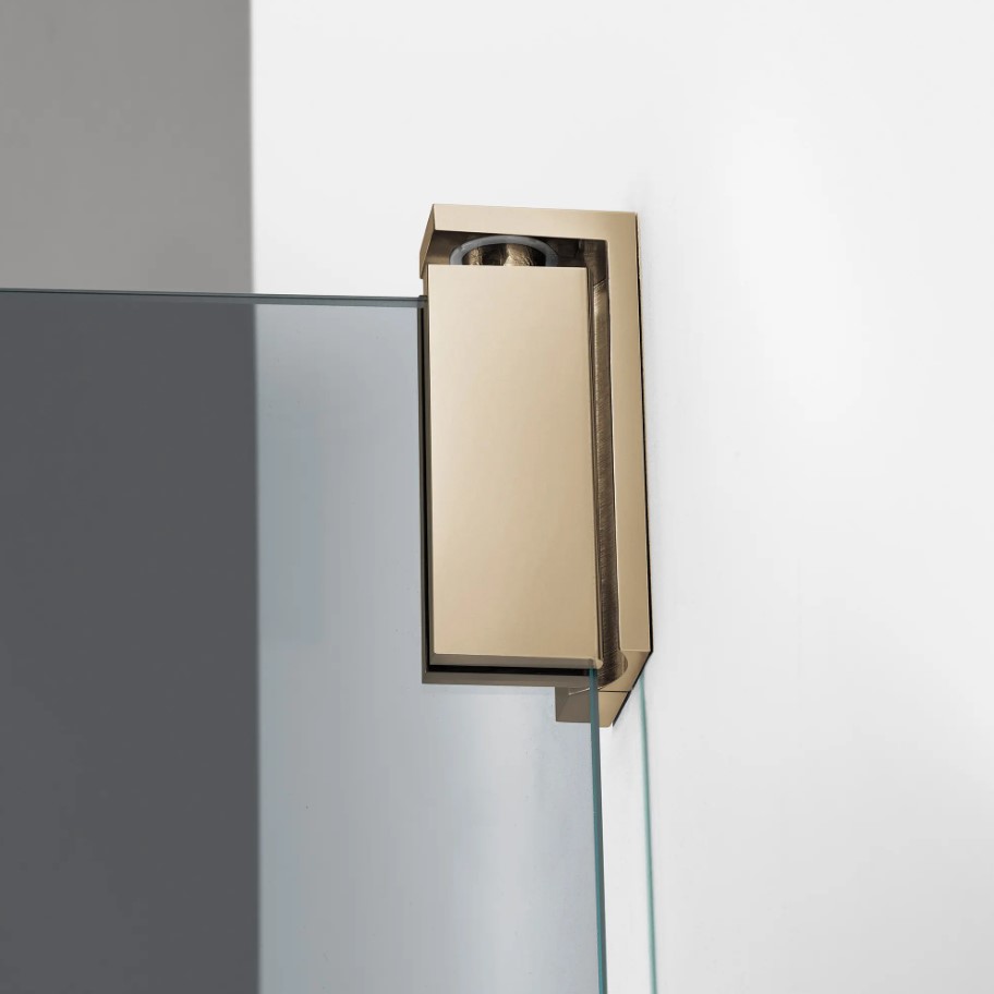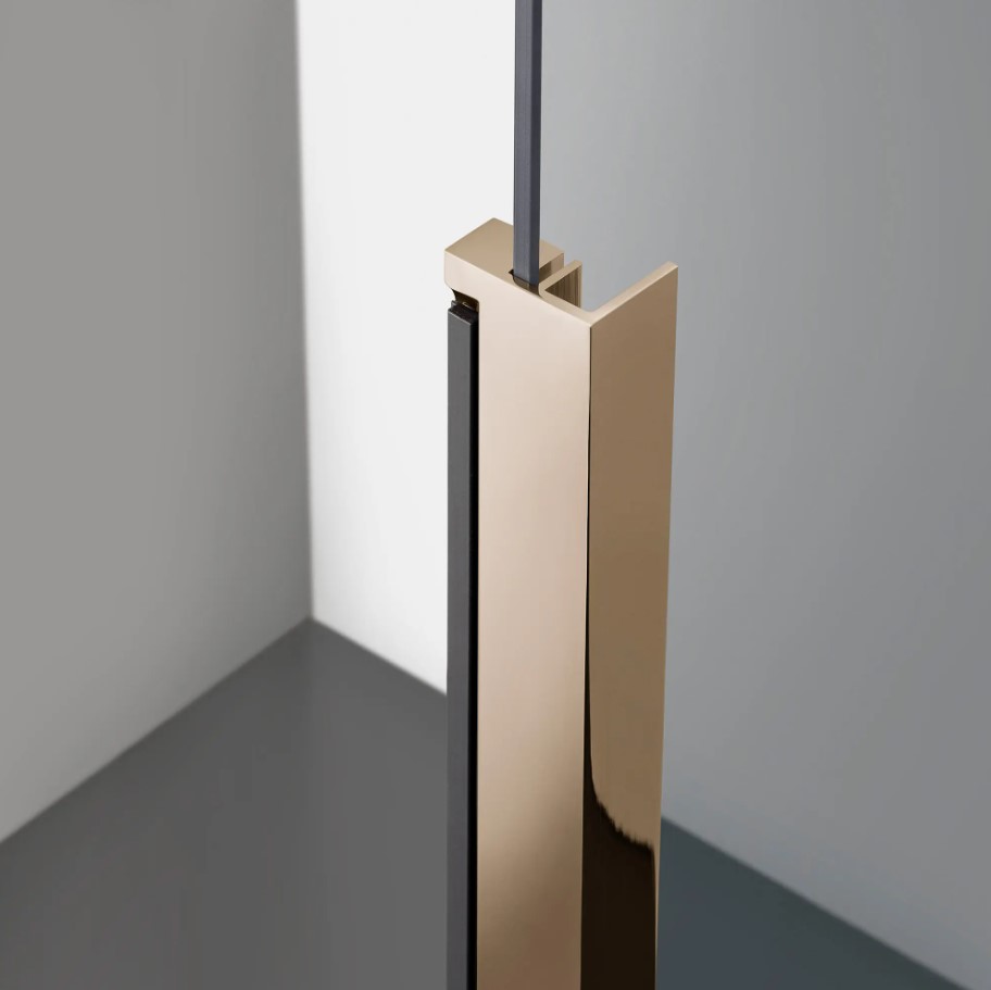 R2 Duschvägg Bad Dörr använder 8 mm glas med stilrena mässingsbeslag som utstrålar exklusivitet och kvalitet.