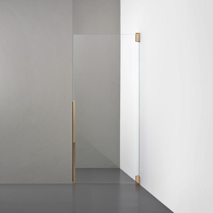 Denna modell kommer med elegant beslag i massiv mässing med olika ytor och ett integrerat handtag, vilket ger en modern och exklusiv känsla till duschutrymmet.