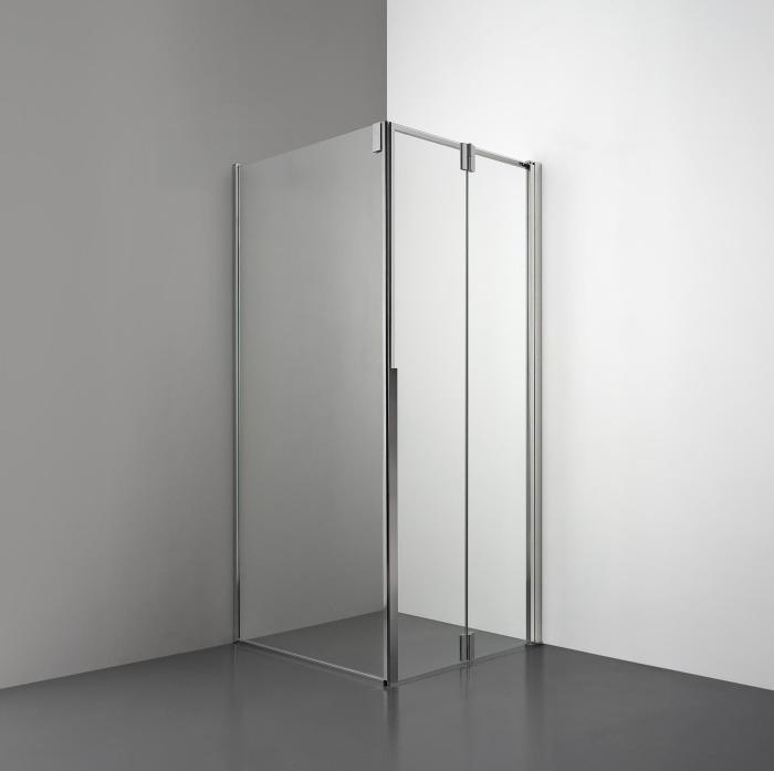 Med R3 Duschhörna Vik Dörr + Vägg optimeras varje millimeter i ett mindre badrum. Den fasta väggen ger stabilitet medan den vikbara dörren gör att glaset kan fällas undan vid behov - en lösning som erbjuder både funktion och modern design.