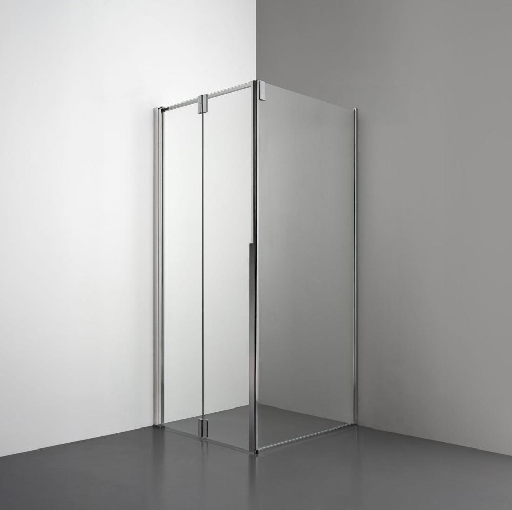 Med R3 Duschhörna Vik Dörr + Vägg optimeras varje millimeter i ett mindre badrum. Den fasta väggen ger stabilitet medan den vikbara dörren gör att glaset kan fällas undan vid behov - en lösning som erbjuder både funktion och modern design.