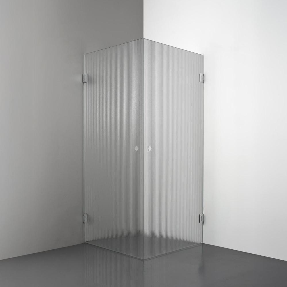 Den här modellen erbjuder två raka duschdörrar i 8 mm glas som möts i en hörna. Lösningen utstrålar lyx och modernitet - med möjlighet att välja mellan olika handtagsalternativ - vilket gör den till en stark kandidat för badrum som kräver en stor ingångsyta och en exklusiv design.