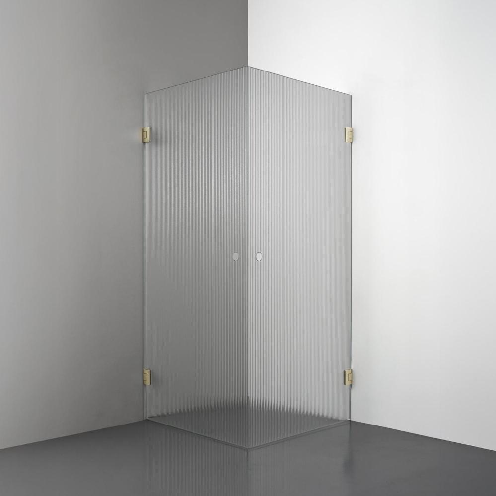 Den här modellen erbjuder två raka duschdörrar i 8 mm glas som möts i en hörna. Lösningen utstrålar lyx och modernitet - med möjlighet att välja mellan olika handtagsalternativ - vilket gör den till en stark kandidat för badrum som kräver en stor ingångsyta och en exklusiv design.