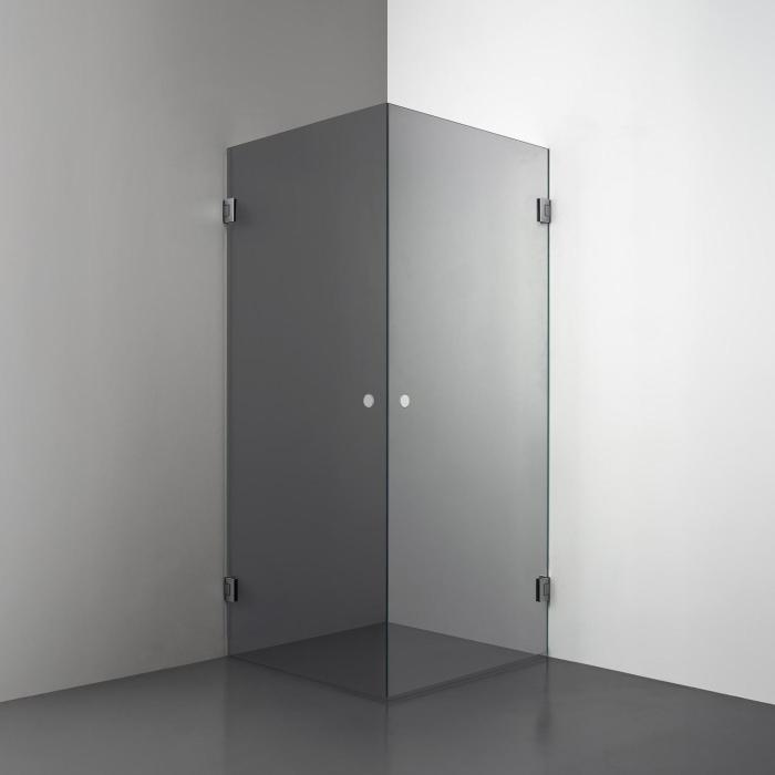 Den här modellen erbjuder två raka duschdörrar i 8 mm glas som möts i en hörna. Lösningen utstrålar lyx och modernitet - med möjlighet att välja mellan olika handtagsalternativ - vilket gör den till en stark kandidat för badrum som kräver en stor ingångsyta och en exklusiv design.