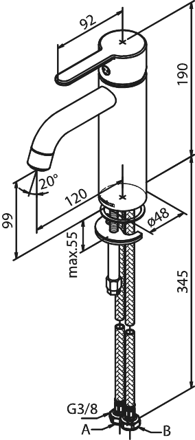 Damixa Silhouet Tvättställsblandare medium, Krom passar perfekt för delvis nedsänkt tvättställ med lite högre kant. Höjd på kran 190 mm.