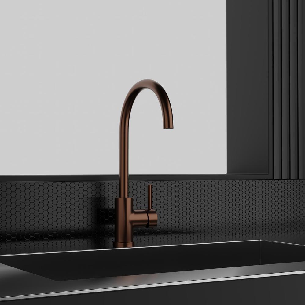 Köksblandare med ett mjukt designspråk. Tidlös klassiker i avskalad tappning med en rundad form och minimalistiska drag.