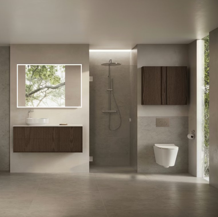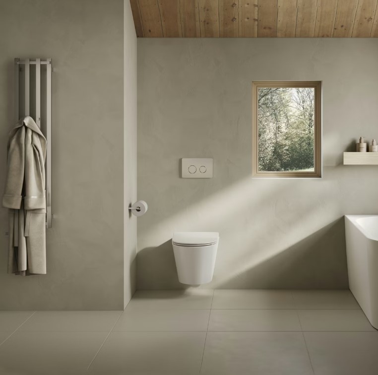 Vege vägghängda WC har ett lätt uttryck som lyfter badrummet visuellt. Rimless-teknik ger effektiv spolning och enkel rengöring, medan den mjukstängande sitsen enkelt kan tas av vid behov.