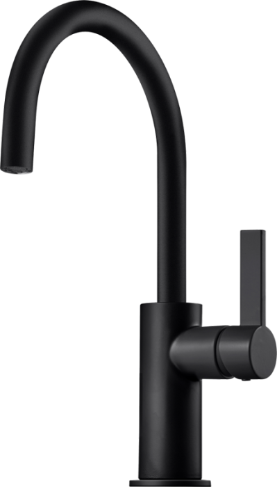 Köksblandare med rund svängbar pip. Pipens svängradie går att begränsa till mellan 60 och 270 grader med 15 graders intervaller.
