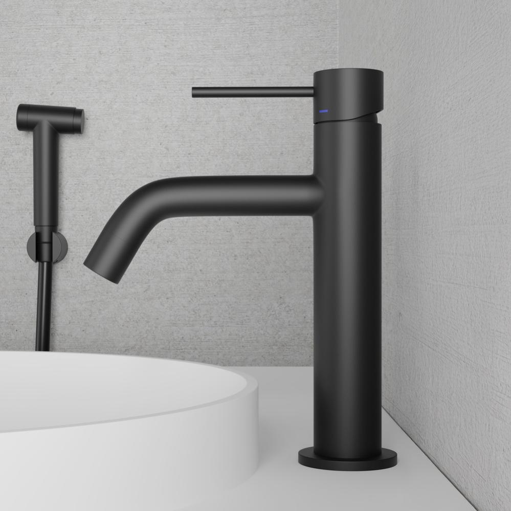 Tvättställsblandare med handdusch (kan användas som bidéblandare).